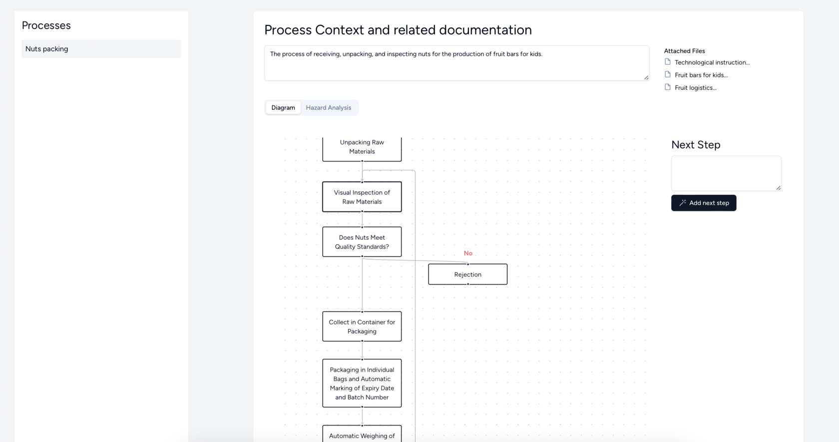 Take the complexity out of hazard analysis with our AI-powered tool. Easily identify, assess, and mitigate potential risks in your food production process while adhering to international standards like FSSC and ISO 9001. Save time, reduce errors, and ensure a safer production environment with intelligent automation